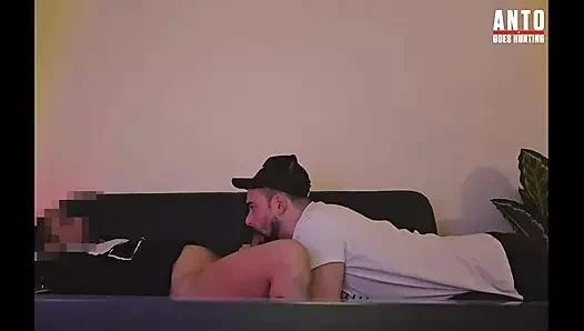 Menpov Büyük Zenci Yarağı Beyaz Adamın Yüzünün Her Yerine Sakso Çekiyor